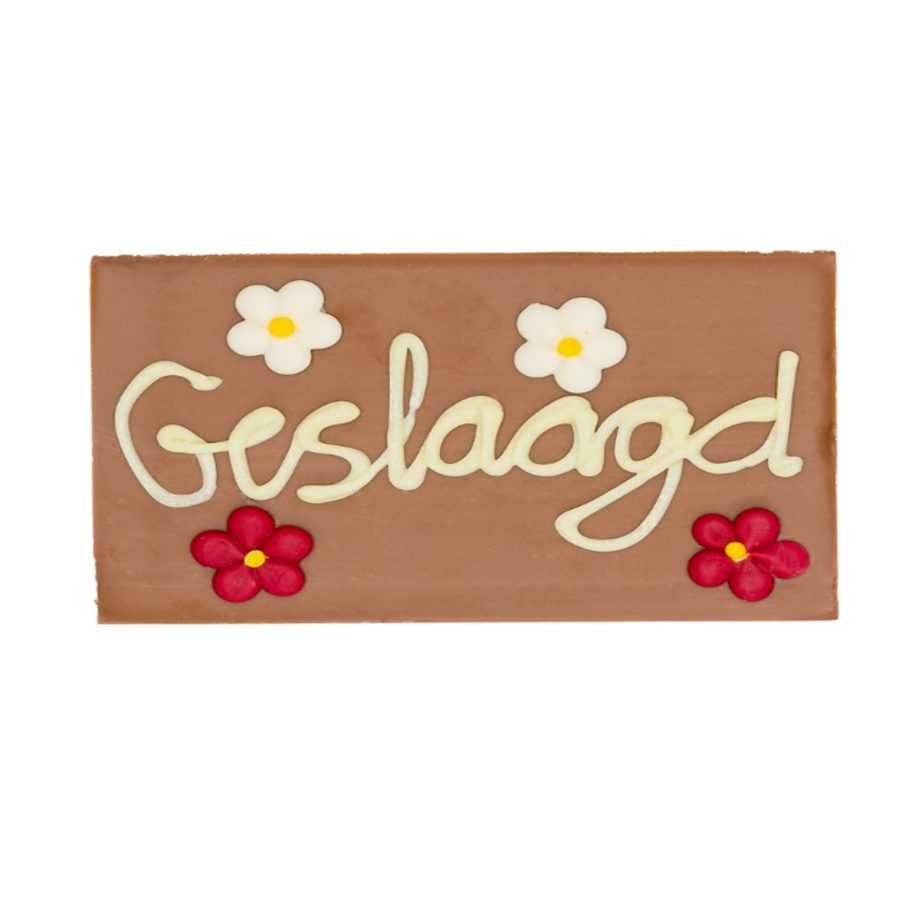 De chocolade reep Geslaagd is een handgemaakte chocolade reep om blij van te worden. Deze chocolade reep Geslaagd is gemaakt van heerlijke Belgische melkchocolade! De chocolade reep geslaagd is handgeschreven met chocolade, dus elke reep is uniek. Een perfect chocolade geschenk als jij iemand in het zonnetje wil zetten!