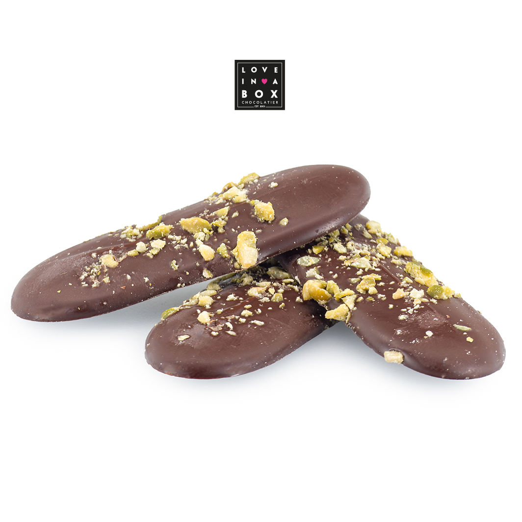 Vier de kerst met de Love in a Box Chocolatde Thins Puur Pistache. Heerlijke luxe chocolade thins van pure chocolade gevuld met pistache. Deze luxe chocolate thins zijn erg leuk op de kersttafel en perfect als kerstcadeau! De Love in a Box Chocolate thins pure chocolade pistache zijn een absolute traktatie voor de fijnproever. Heerlijke pure chocolade gevuld met een zachte vulling van pistache.