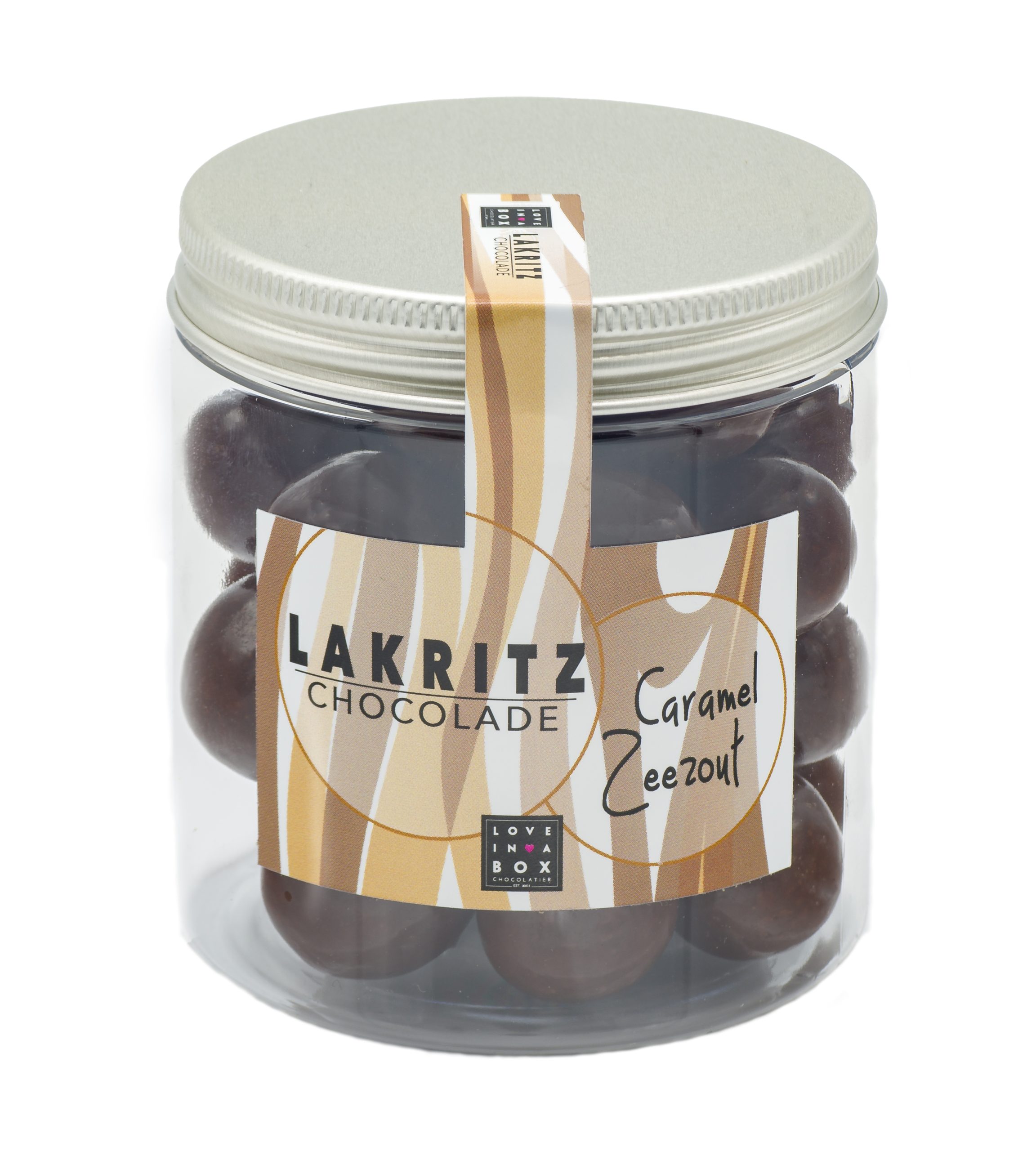 Love in a Box Lakritz Chocolade Melk Caramel Zeezout is een smaakmakende chocolade verrassing. Heerlijke gezouten drop omhuld met romige melkchocolade gerold in Karemelpoeder en zeezout, perfect geschikt als sprankelend tussendoortje.