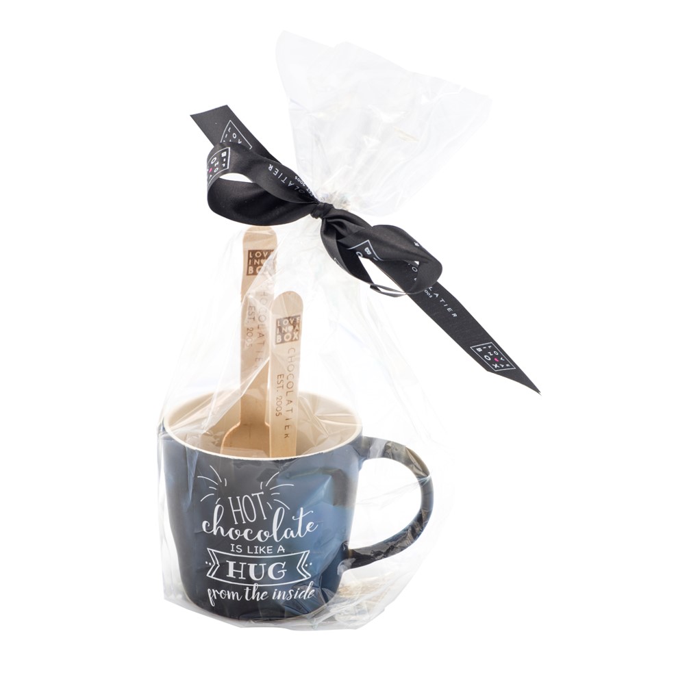 Omschrijving: Luxe Chocolade Geschenk Mok + 2x Chocolade spoons – chocolade spoons – 90g