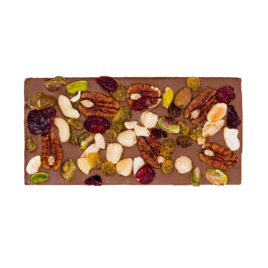 Luxe chocolade Reep Noten, Cranberries & Rozijnen Melk – 100g